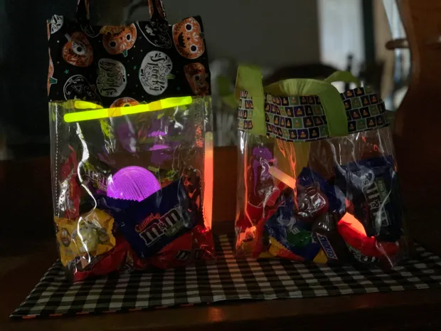 Having an extra bag will benefit you in the long haul, especially if your kids are carrying small trick-or-treat pails. It will help with the overflow and be aware of how much they’re eating along the way. Also can use the clear thick plastic bags to see the candy more clearly.